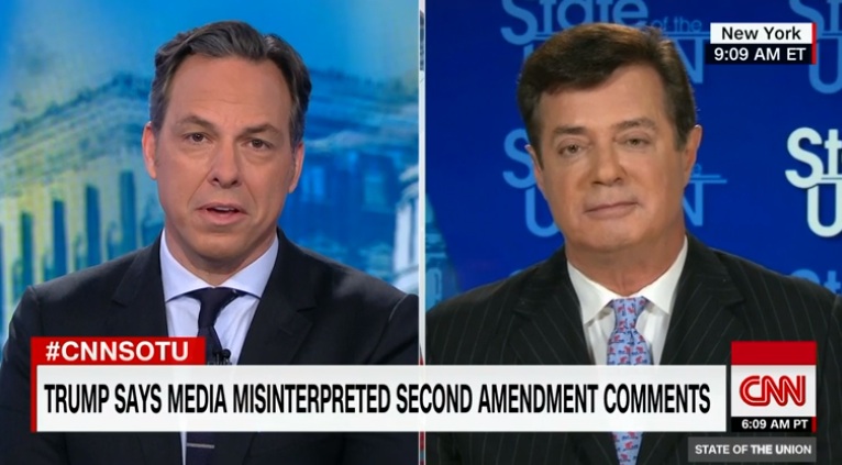 Tapper then mentioned Trump’s comment about “Second Amendment people” and asked Manafort if Trump should be more careful.