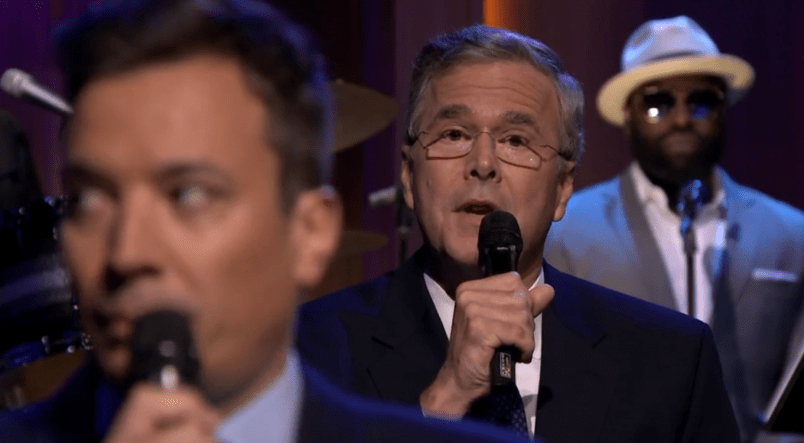 During his appearance, Bush, who formally announced he was seeking the Republican nomination for President on Monday, was asked to participate in Fallon’s “slow jam the news” bit.