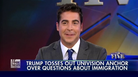 Fox’s Jesse Watters joined “The Five” on Wednesday, where he compared Univision host to an “illegal alien” after the journalist was temporarily kicked out of a Donald Trump press conference in Iowa.