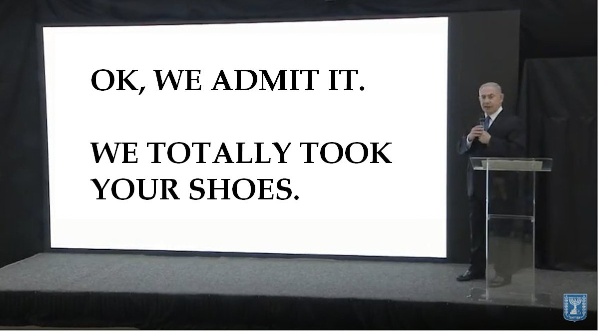Meanwhile crooked Bibi is “Wagging the Hush Puppies”