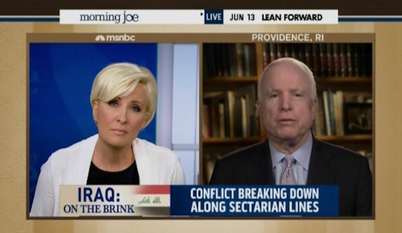 Later in the conversation, Brzezinski again pressed McCain as to whether he’d commit troops to Iraq, as well as Afghanistan and Syria, in order to keep insurgents at bay.