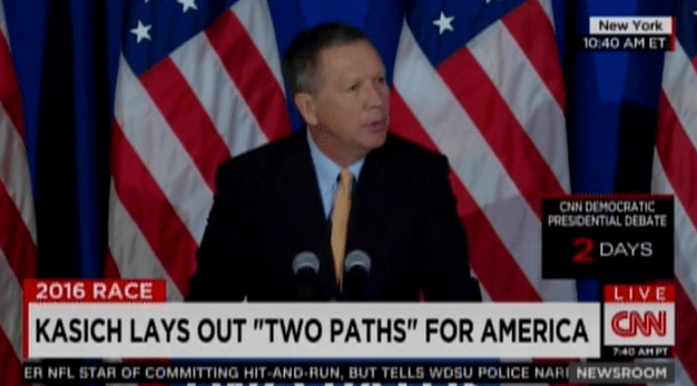 “I say to you that this path to darkness is the antithesis of all that America has meant for 240 years,” Kasich said.
