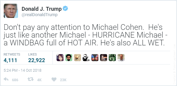 — Michael Cohen (@MichaelCohen212) October 14, 2018