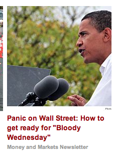 That question about the “coming economic collapse” would have been even more hilarious and snarkworthy if, the first time I clicked on it, there weren’t a sponsored link below this TPM article hawking some sort of drivel about a Wall Street “panic” and “Bloody Wednesday” or whatever sort of despicable panic-strewing is involved. I do wish responsible news sites didn’t have this stuff but they all do, as far as I can tell. Sad.