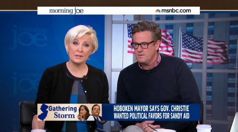 “Morning Joe” hosts Joe Scarborough and Mika Brzezinski, self-described fans of New Jersey Gov. Chris Christie (R), attacked the mayor of Hoboken, N.J. Monday for alleging Christie’s administration shook her down for Hurricane Sandy relief funds.