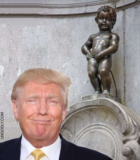 Not to be overlooked, the maneken pis in Brussels acknowledges the POTUS.