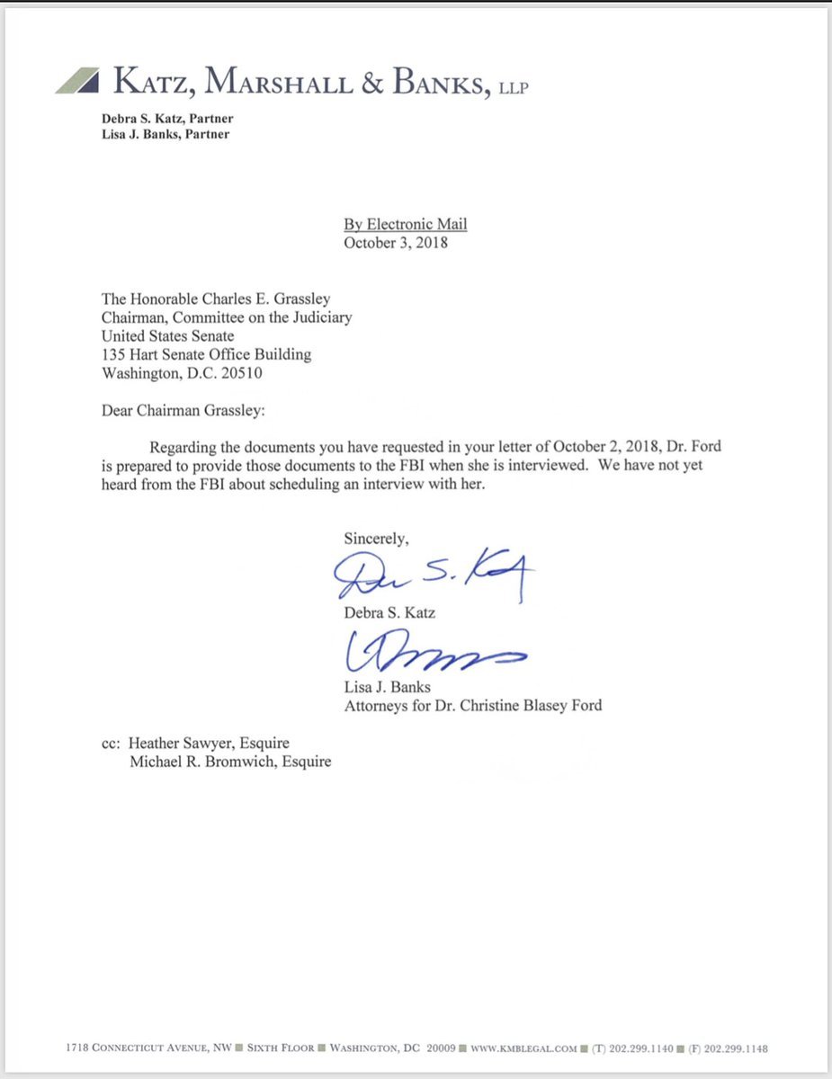 And her lawyer just delivered a graceful parry to Grassley per the demand for more documentation.