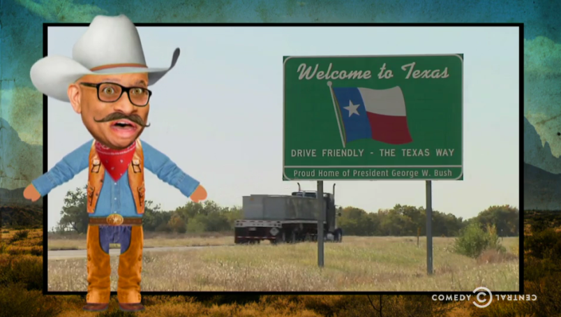 “Welcome to Texas, my little refugee friends,” the video opens. “You’re going to live in the rootinest, tootinest state in all the land. You’re moving from a desolate land of oil and guns to a breathtaking land of oil and guns.”