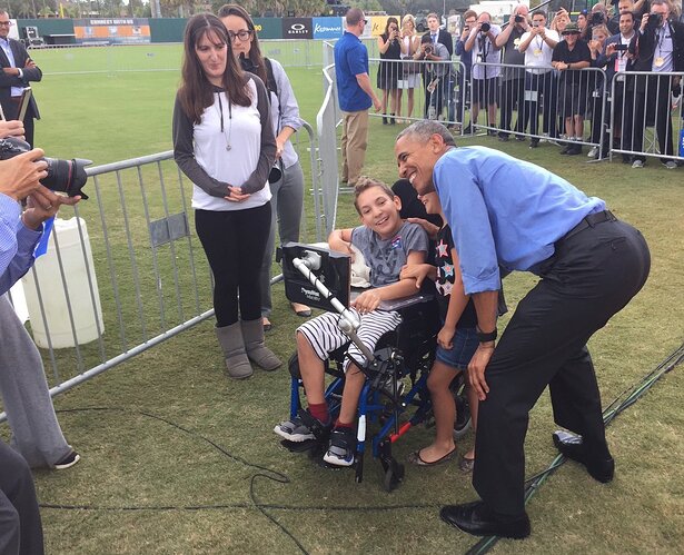 A woman who witnessed the incident asked for help in arranging a meeting between J.J. and President Barack Obama, who stumped for Clinton Sunday in nearby Kissimmee.