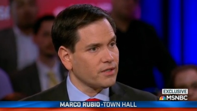 During the town hall moderated by MSNBC’s Chuck Todd, an audience member asked Rubio, “If you were to institute your merit-based immigration policy, wouldn’t you be shutting out people like your parents?”