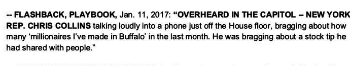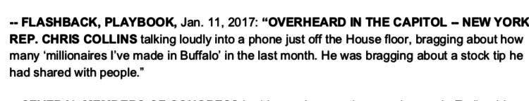 While his guilt or innocence is a question for the courts to settle, the allegations against Rep. Collins demand a prompt and thorough investigation by the House Ethics Committee. Insider trading is a clear violation of the public trust. Until this matter is settled, Rep. Collins will not be serving on the House Energy and Commerce Committee.