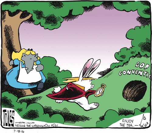 I get tempted to laugh at the preposterous suggestions Trump is making, but then a part of me is desperately afraid of what would happen to us should he become President. There’s also that whole disrespectful thing of Trump “talking over” the other Republican speakers. I will never understand what these people must think of themselves in order to support him.