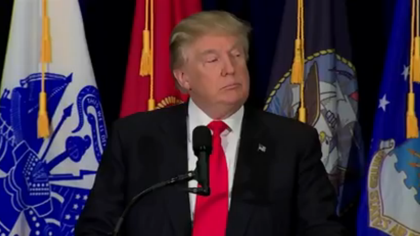 At the top of the speech in Virginia Beach, Virginia, Trump addressed the Dallas shooting that resulted in the deaths of five police officers last week. In an appeal to police officers, Trump said he was appreciative of their service.