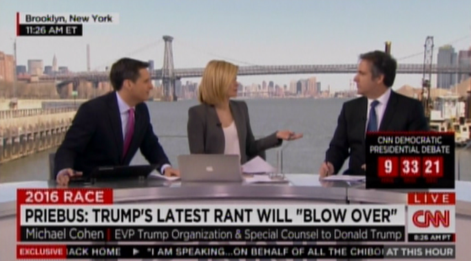 Cohen is employed by the Trump Organization, not the presidential campaign, but frequently makes cable news appearances defending Trump’s candidacy. In Thursday’s interview, he attacked RNC chair Reince Priebus for doing a “terrible job” of unifying the party.