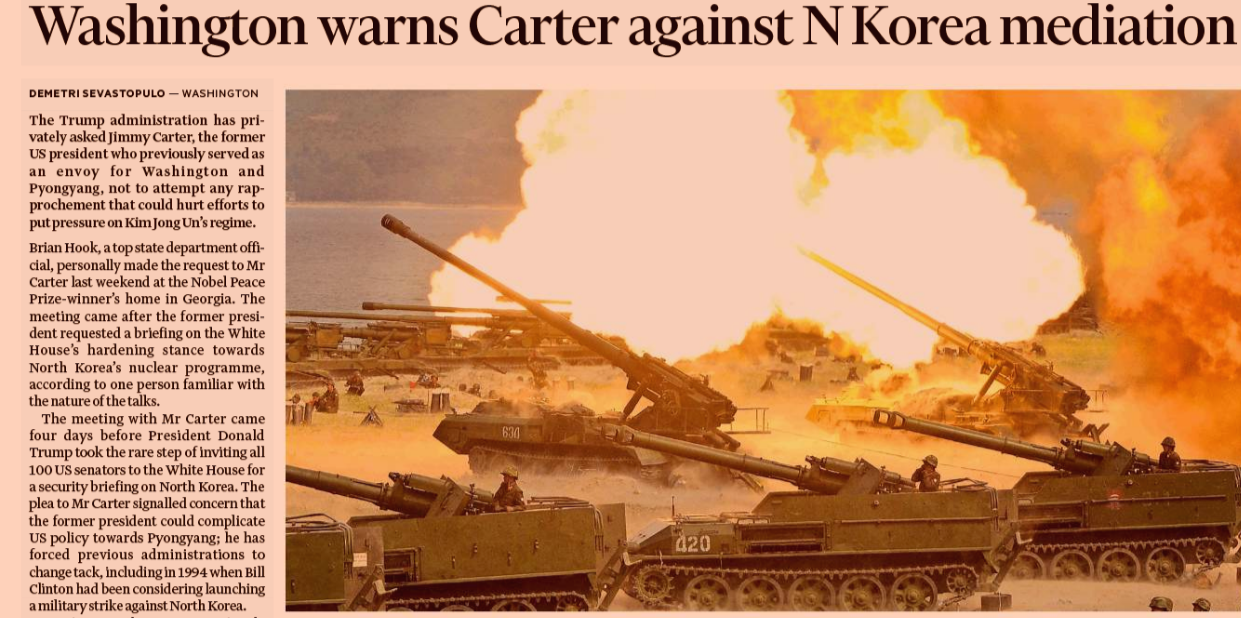 “There is a chance that we could end up having a major, major conflict with North Korea. Absolutely,” he told Reuters on Thursday. “We’d love to solve things diplomatically but it’s very difficult.”
