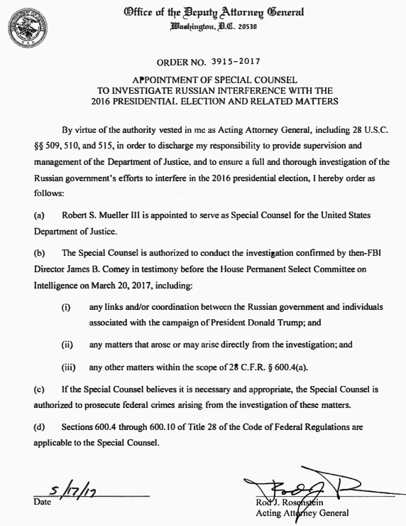 No, I didn’t think so. It’s all about what threat does he represent to Trump. Yet Trump is not the damned primary objective Rosenstein layed out in appointing Mueller.