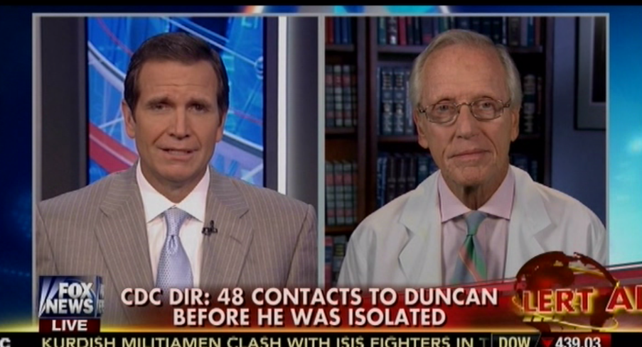 One by one, Dr. William Schaffner answered Scott’s breathless questions on Wednesday afternoon about an Ebola-infected healthcare worker who boarded a flight from Cleveland to Dallas, providing a calm counter to Fox’s apocalyptic coverage of the outbreak.