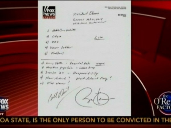 O’Reilly Auctions Off ‘Journalistic History:’ His Obama Interview Notes