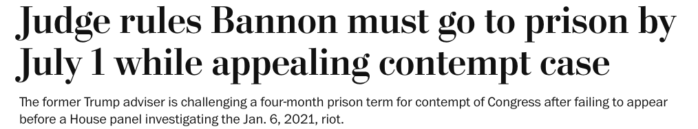 Also, why is there even a question as to whether Bannon should go to jail immediately?