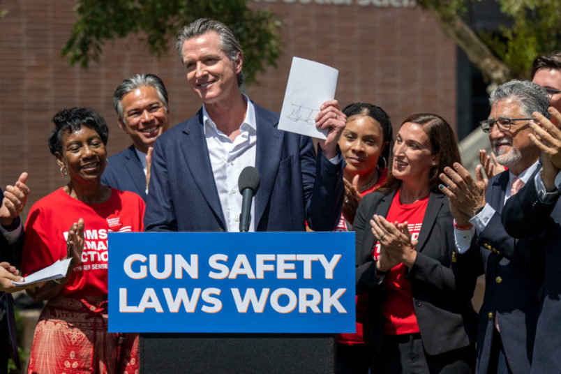 California Gov. Gavin Newsom (D) signed a bill modeled after Texas’ anti-abortion law which allows private citizens to sue as a means to enforce a ban–except California’s new law is about assault weapons.