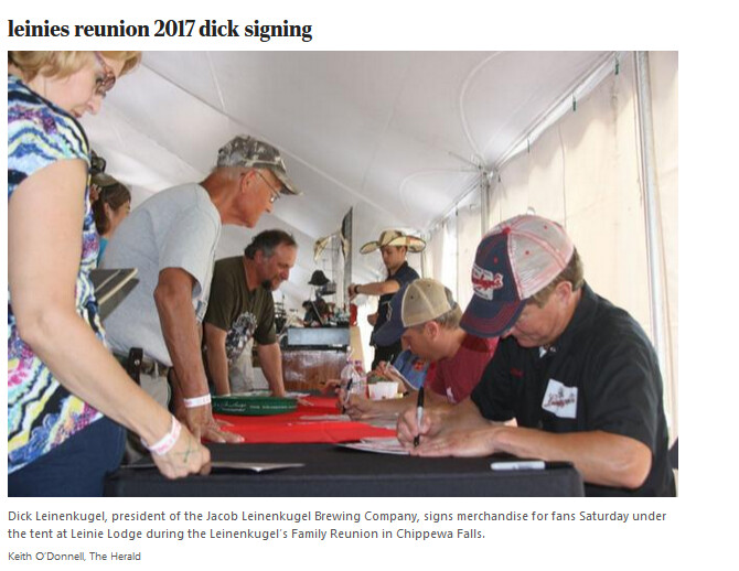 At a “Leinie family reunion” for friends and fans, he was autographing items. Be careful how you title those pics, folks.