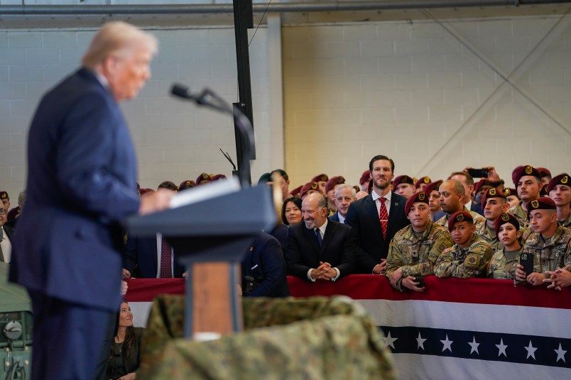In a campaign-style rally at the newly renamed Ft. “Bragg” — no longer named for the notorious Confederate general but, in a sly wink and nod of white nationalists, for an obscure WWII paratrooper — President Trump gave an overtly political speech to uniformed personnel, urging them to vote Republican in this year’s midterm elections.