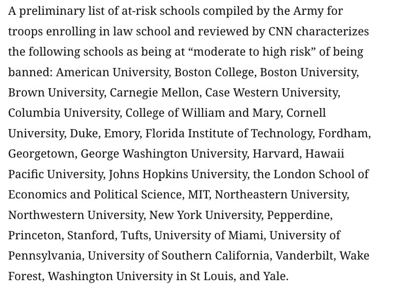 - Nationwide: Defense Secretary Pete Hegseth is creating a list of top universities that will no longer be eligible for tuition assistance for service members because they are “biased,” CNN reports: