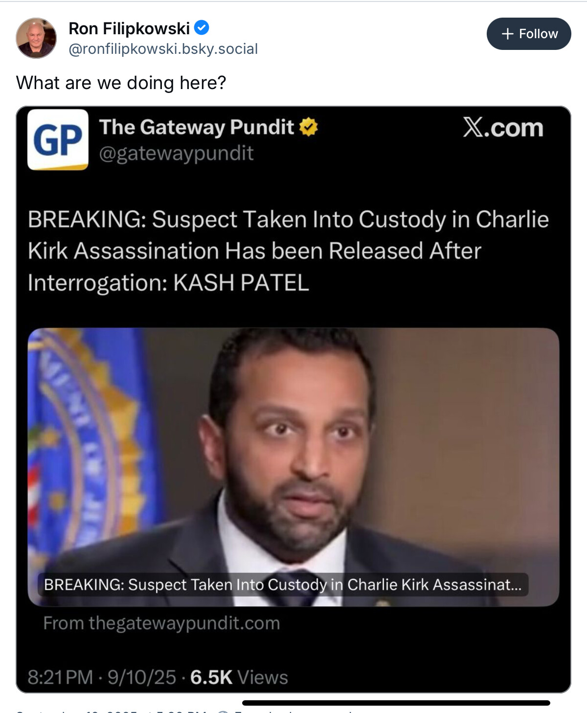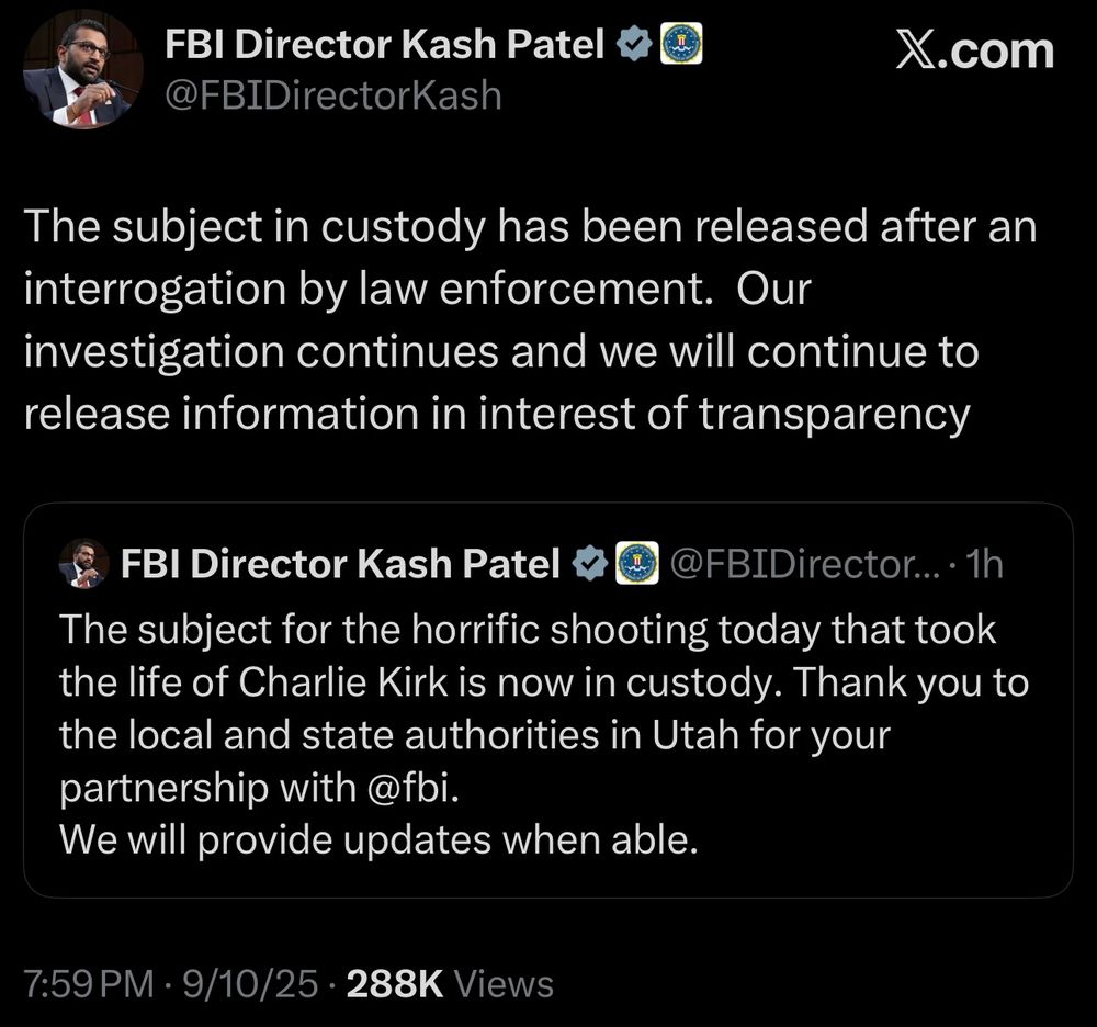 Hours before Patel befooled himself by live-tweeting the serial apprehension then release of two different people mistakenly believed to be Kirk’s assailant, three fired senior FBI officials described in vivid detail a bureau nearly crippled by the social media obsessions of Patel and his top deputy Dan Bongino.