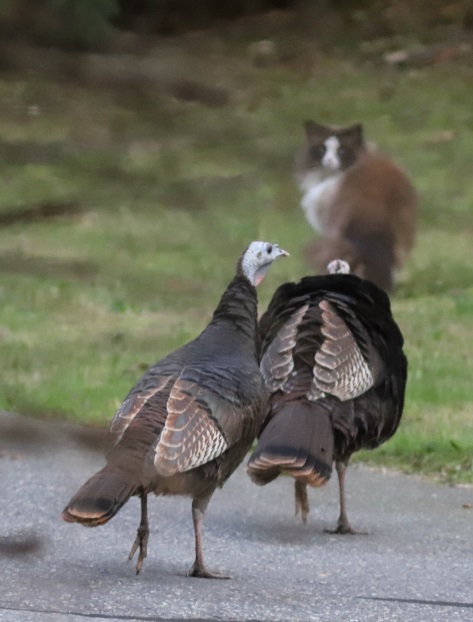 Local felon-supporter’s cat being escorted from the Cargo property by our Wild Turkey Assault Force (WTAF).
