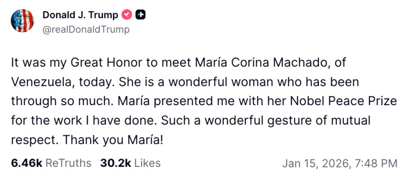 President Trump accepted the Nobel Prize from its most recent recipient like the cheap club championships he awards himself at his own golf courses — and with just as much self-awareness: