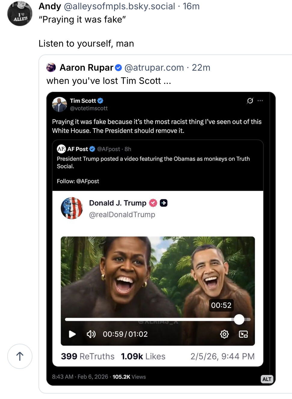 On the same day it was reported that the National Park Service is editing visitor brochures to no longer label the klansman who murdered Medgar Evers a “racist,” President Trump posted a 2020 Big Lie video on social media that portrays Barack and Michelle Obama as apes.
