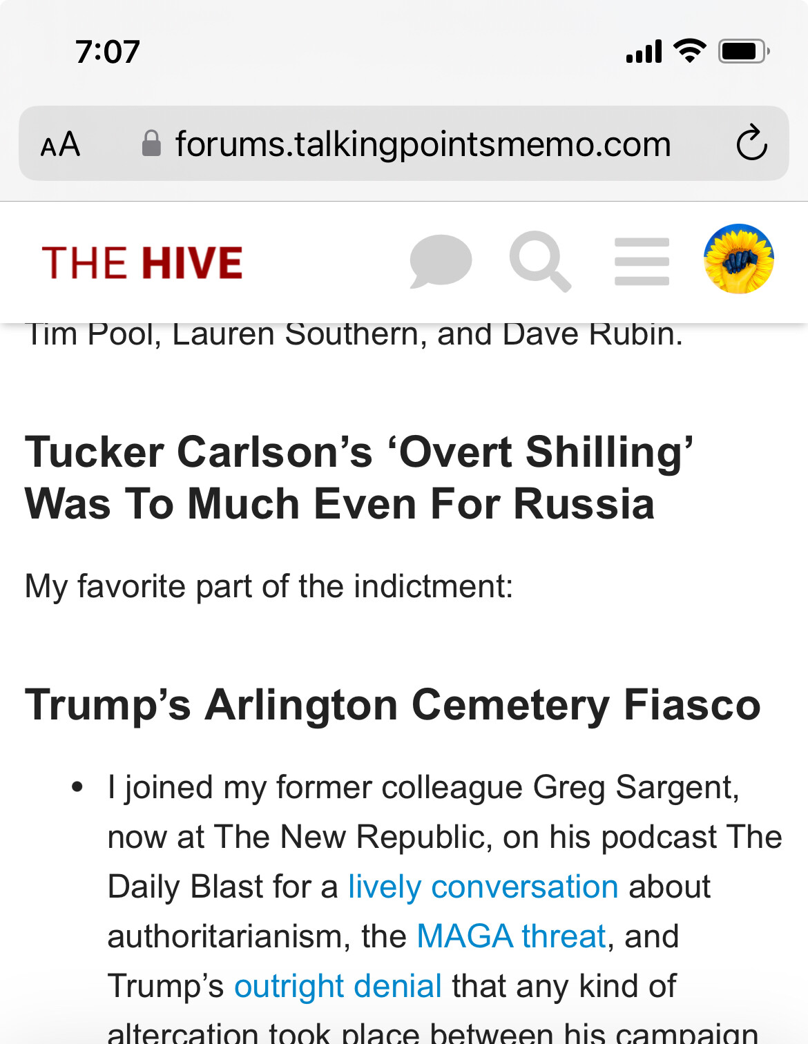 - I joined my former colleague Greg Sargent, now at The New Republic, on his podcast The Daily Blast for a lively conversation about authoritarianism, the MAGA threat, and Trump’s outright denial that any kind of altercation took place between his campaign staff and an Arlington National Cemetery staffer trying to enforce the rule against political activities. My thanks to Greg having me on: