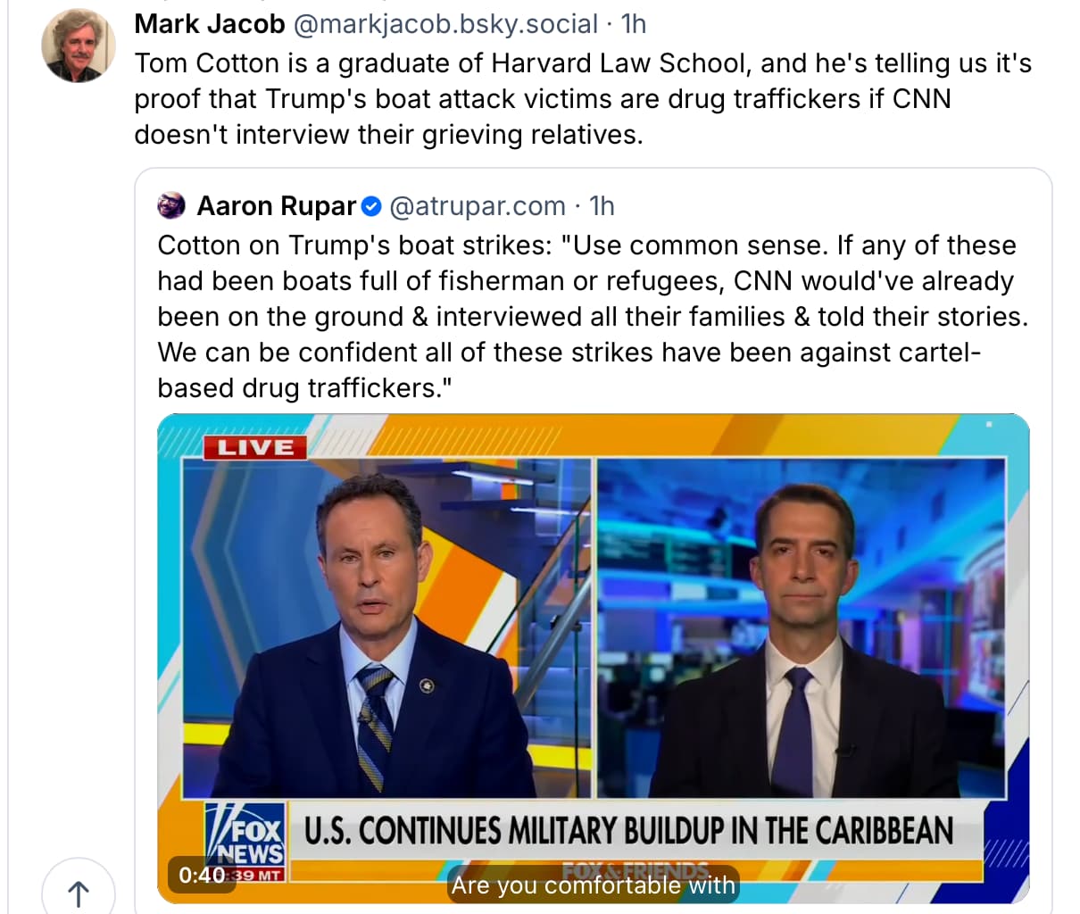And if CNN did interview the grieving relatives Cotton and other Regime militarists would likely refer to CNN as treasonous.