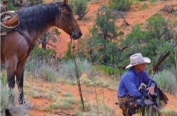 Finicum’s 241-page apocalyptic cowboy thriller titled “Only By Blood and Suffering” is a how-to on surviving after a electromagnetic pulse or nuclear attack when your Escalade stops driving, the government has bought back all of your guns, President Bill Clinton signed away your country’s missile technology to the Chinese, the Supreme Court is loaded with lefty judicial activists and you don’t have an adequate amount of gold and “junk silver” to get by when the stock market implodes, interest rates balloon overnight and the value of the dollar collapses.
