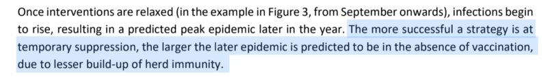 - Temporarily suppressing the spread of the epidemic through mass social distancing could lead to more people being infected later on. The success of early efforts to limit the spread reduces herd immunity, the report contends.