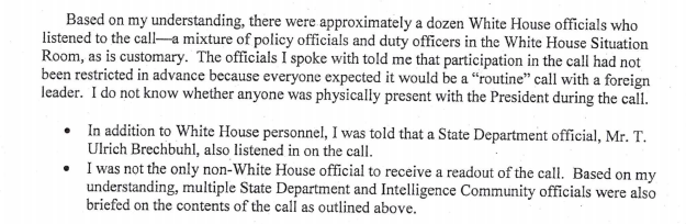 The whistleblower alleged that around “a dozen” White House officials listened in on the call, and that “everyone expected it would be a ‘routine’ call with a foreign leader.”