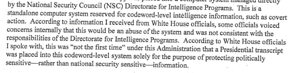 Stuffed deep in the complaint’s appendix is the revelation that, according to the whistleblower’s sources, “this was ‘not the first time’ under this Administration that a Presidential transcript was placed into this codeword-level system solely for the purpose of protecting politically sensitive — rather than national security sensitive — information.”