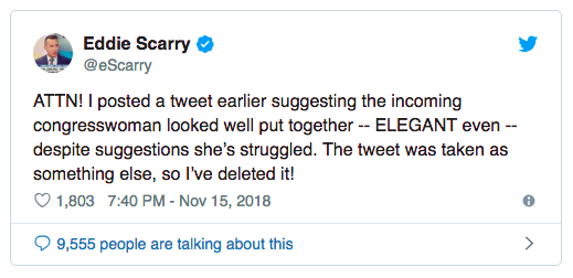 ATTN! I posted a tweet earlier suggesting the incoming congresswoman looked well put together — ELEGANT even — despite suggestions she’s struggled. The tweet was taken as something else, so I’ve deleted it!