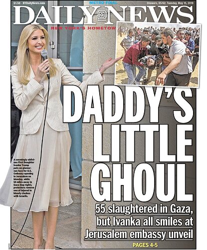 In other news of King Spanky and his gangs’ Lessons in Humanitarianism, Ivankatoinette again lived up to her well-deserved moniker in Jerusalem yesterday.