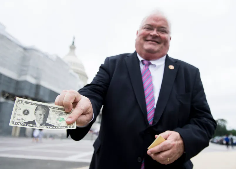 As phony as the bill he’s holding.