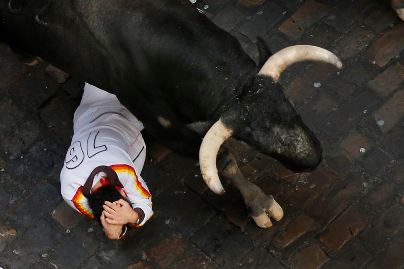 Dozens of people are injured each year in the “encierros,” as the runs are called in Spanish, most of them in falls.
