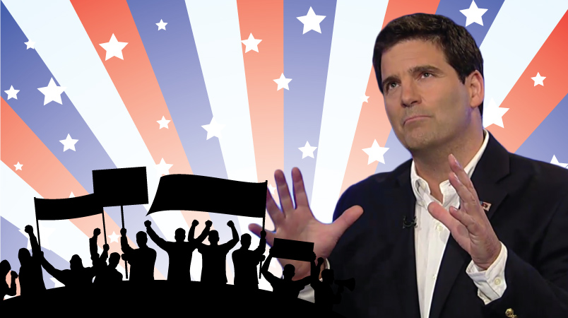 Lynch looks and sounds like a combination of Sen. Ted Cruz (R-TX) and Fox News host Sean Hannity, who invites him on Fox often. Throughout his six-month campaign he showed up to speeches with free copies of his DVDs in hand.