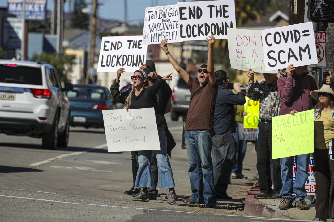 “This is a sharing information protest and march against everything COVID, Vaccine, PCR Tests, Lockdowns, Masks, Fauci, Gates, Newsom, China, digital tracking, etc.,” the social media post said.