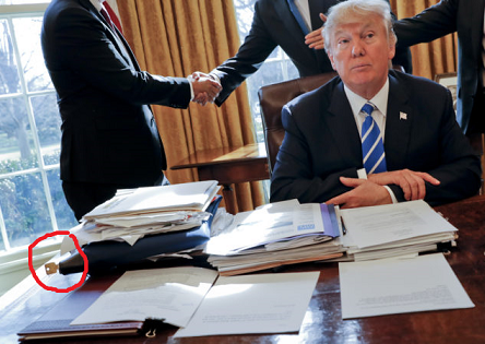 “This blue satchel? Mr. President, this is for important, sensitive documents. If it’s not in the safe, but on your desk, always keep it locked. And secure the key someplace discreet where only you have access to it, ok?”