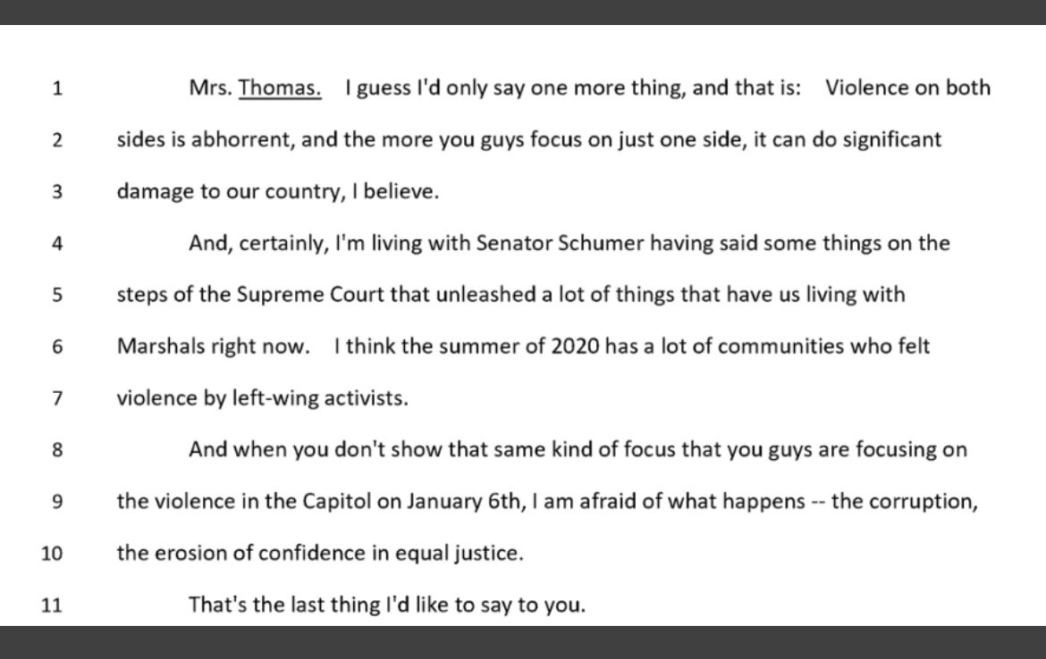 Throughout the transcript, Thomas was usually careful to use the past tense when talking about her beliefs that the 2020 election was poisoned with fraud. And both she and her lawyer objected to questions premised on the idea that she considers the election “stolen.”