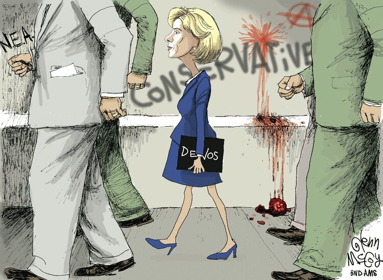 Many Twitter users were offended by the cartoon, which they viewed as putting forward a false equivalency between DeVos, who faced questions about her qualifications for a Cabinet position, and a child facing violence for desegregating a school.