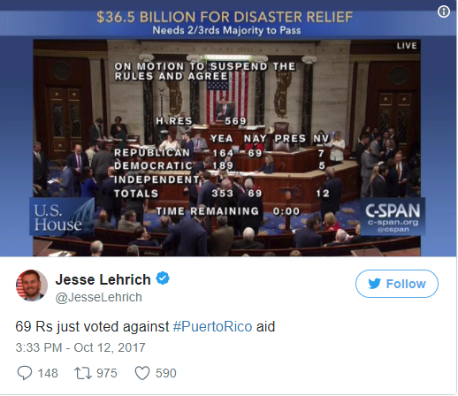 WASHINGTON (AP) — The House has passed a $36.5 billion measure that would replenish government disaster aid funds and help the cash-strapped government of Puerto Rico keep functioning in the devastating aftermath of Hurricane Maria.