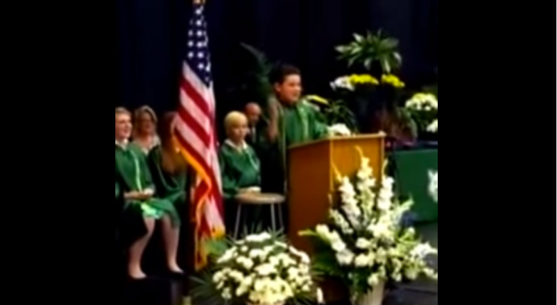 WMAQ-TV reports (http://bit.ly/1UA06rh ) that the speech was written as part of an assignment given to the roughly 350-student graduating class. Aiello’s speech was one of three given at the ceremony.