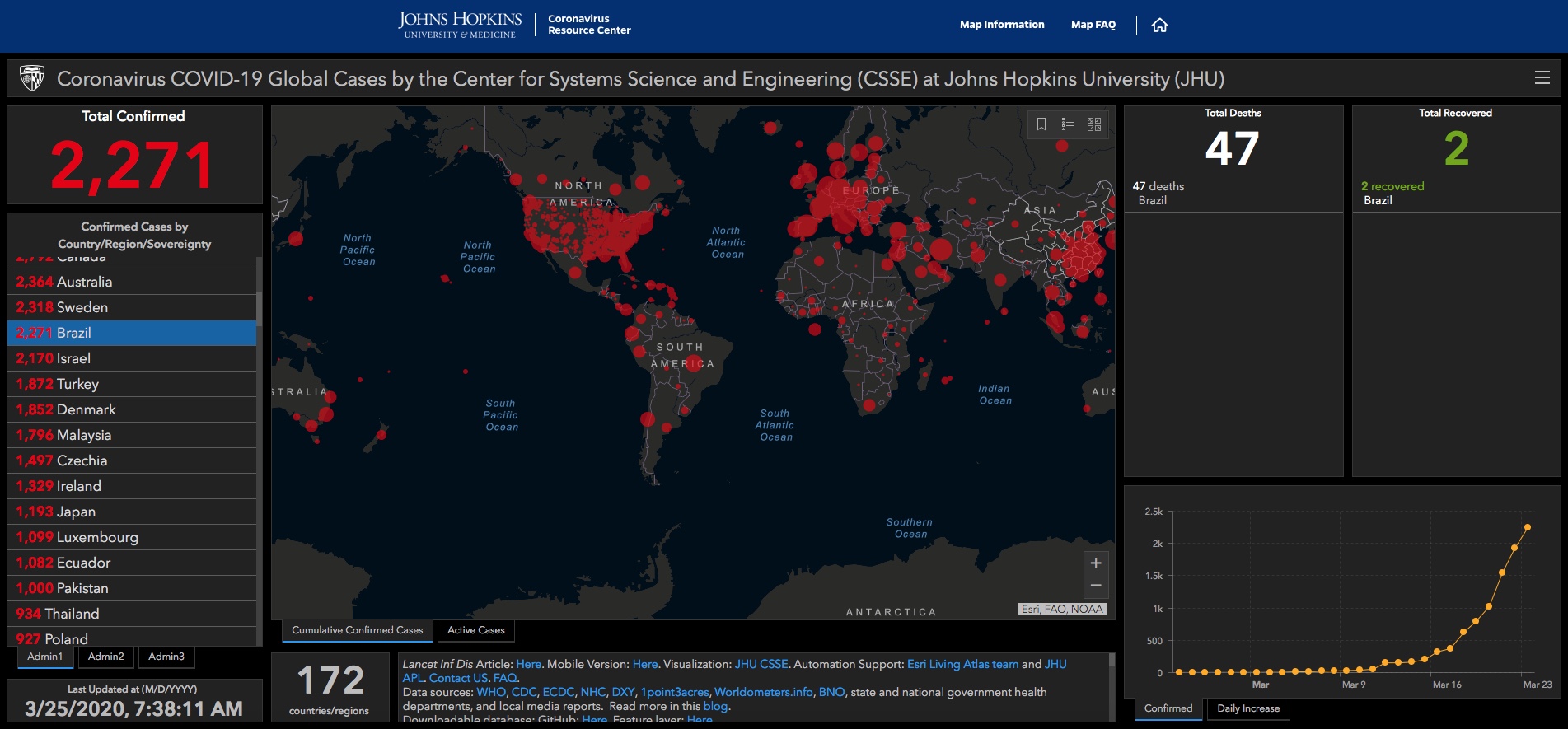 About 2,200 people in Brazil have been infected so far, with 46 dead.