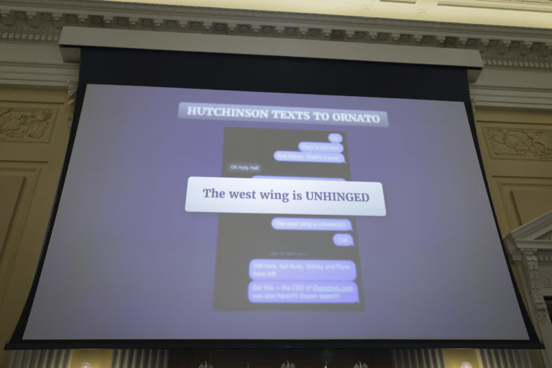 During her public testimony, Hutchinson provided her under oath account of what she witnessed and heard from others about Trump’s behavior that day. Most notably, she told the panel that then-White House Deputy Chief of Staff Anthony Ornato relayed a story to her in which Trump lunged at a Secret Service agent after he was told they wouldn’t take him to the riot as it unfolded.